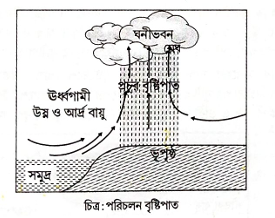 1. পরিচলন বৃষ্টিপাত: ধারণা: ভূপৃষ্ঠ উয় হলে পরিচলন পদ্ধতিতে জলীয় বাষ্পপূর্ণ বায়ু প্রবলবেগে ওপরে উঠে শীতল ও ঘনীভূত হয়ে যে বৃষ্টিপাত ঘটায়, সেই বৃষ্টিপাত পরিচলন বৃষ্টিপাত নামে পরিচিত।