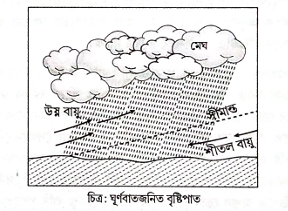 3. ঘূর্ণবাতজনিত বৃষ্টিপাত: ধারণা: বাতাসের ঘূর্ণন গতির জন্যে জলীয় বাষ্পপূর্ণ আর্দ্র বায়ু ওপরে উঠে শীতল ও ঘনীভূত হয়ে যে বৃষ্টিপাত ঘটায়, সেই বৃষ্টিপাত ঘূর্ণবাতজনিত বৃষ্টিপাত নামে পরিচিত।