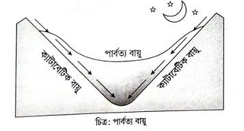 পার্বত্য বায়ু: শান্ত মেঘমুক্ত রাত্রিতে পর্বতের ওপর অংশের বায়ু দ্রুত তাপ বিকিরণ করে শীতল ও ভারী হয় এবং মাধ্যাকর্ষণ শক্তির প্রভাবে