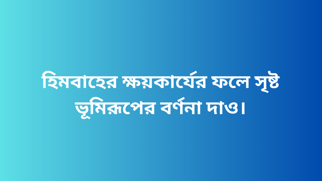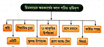 উত্তর [ হিমবাহের ক্ষয়কার্যের ফলে সৃষ্ট ভূমিরূপ হিমবাহের ক্ষয়কার্য শুধু উঁচু পর্বতের ওপরই সীমাবদ্ধ থাকে এবং এই ক্ষয়কার্যের ফলে উঁচু পার্বত্য অঞ্চলে বিভিন্ন প্রকার ভূমিরূপের সৃষ্টি হয়, যেমন-