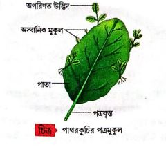 3.পাতা (Leaf):- বিগোনিয়া, পাথরকুচি পাতার কিনারায় অসংখ্য পত্রজ বা পত্রাশ্রয়ী মুকুল সৃষ্টি হয়, যেগুলির নিম্নাংশ থেকে অস্থানিক মূল তৈরি হয়। এই অস্থানিক মূলসহ পত্রাশ্রয়ী মুকুল পাতা থেকে বিচ্ছিন্ন হয়। পত্রাশ্রয়ী মুকুল থেকে অপত্য উদ্ভিদ সৃষ্টি হয়।
