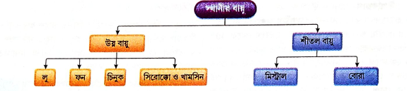 7. অন্যান্য স্থানীয় বায়ু: ① দক্ষিণ আমেরিকার দক্ষিণ অংশে আন্দিজ পর্বতের পূর্ব ঢাল থেকে যে শীতল ও শুষ্ক বায়ু পম্পাস তৃণভূমির ওপর দিয়ে প্রবাহিত হয়, তাকে বলে পাম্পেরো। ② আফ্রিকার উত্তর-পশ্চিম উপকূলে যে উন্ন, শুষ্ক ও ধূলিপূর্ণ বায়ু প্রবাহিত হয় তাকে হারমাট্টান বলে।