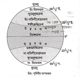 পৃথিবীর বিভিন্ন অংশের তাপবলয়গুলির পরিচয় দাও।