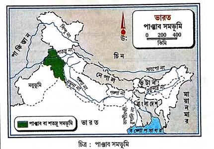 পাঞ্জাব সমভূমি: অবস্থান: উত্তরের সমভূমি অঞ্চলের পশ্চিমাংশের নাম পাঞ্জাব সমভূমি। অঞ্চলটি যমুনা নদীর পশ্চিম দিক থেকে প্রসারিত হয়ে পাকিস্তানের পূর্বদিকের বেশ কিছু অংশ পর্যন্ত বিস্তার লাভকরেছে। দিল্লি, পাঞ্জাব ও হরিয়ানা এই অঞ্চলের অন্তর্গত।
